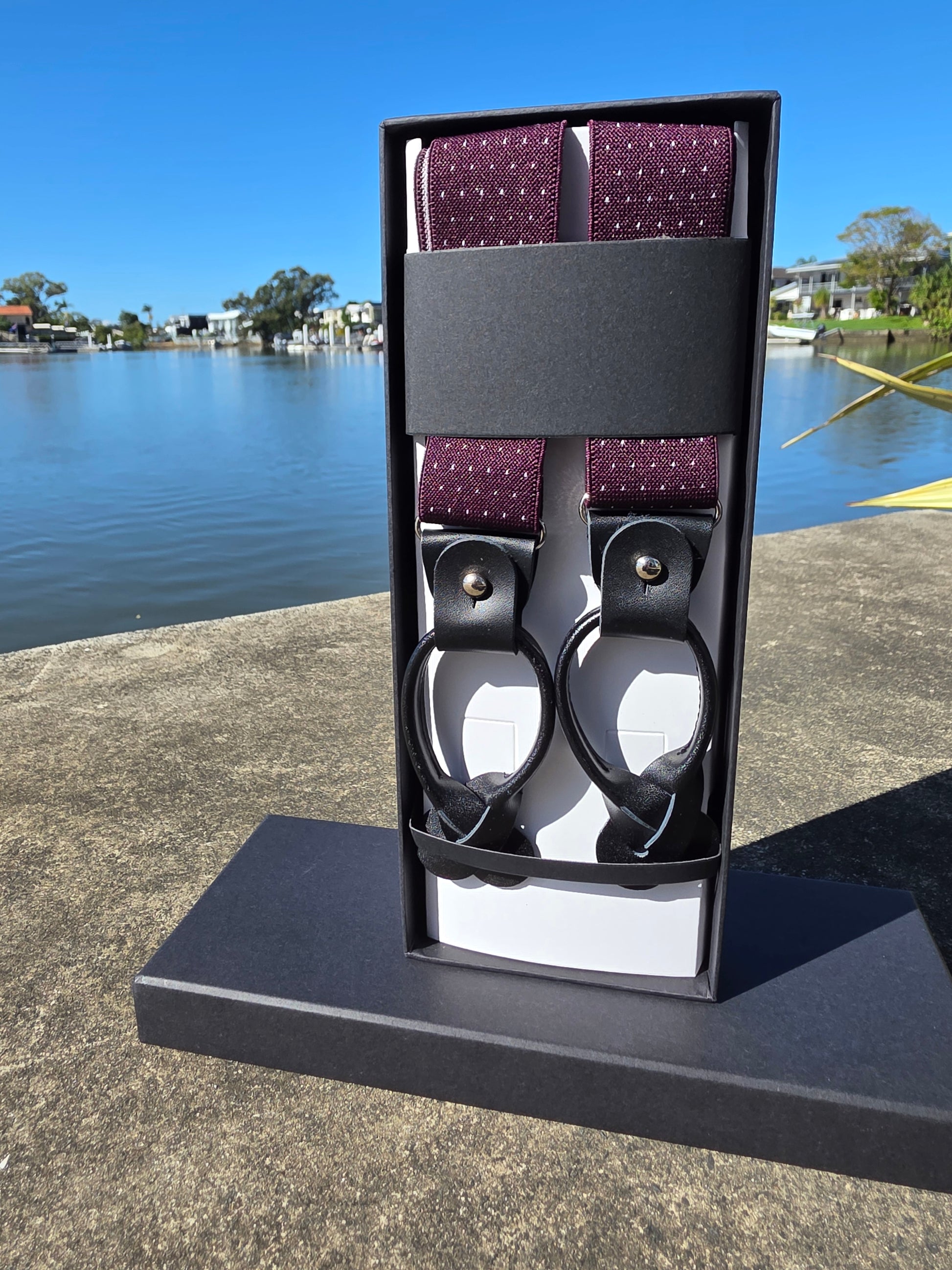 Polka dot Burgundy Suspenders